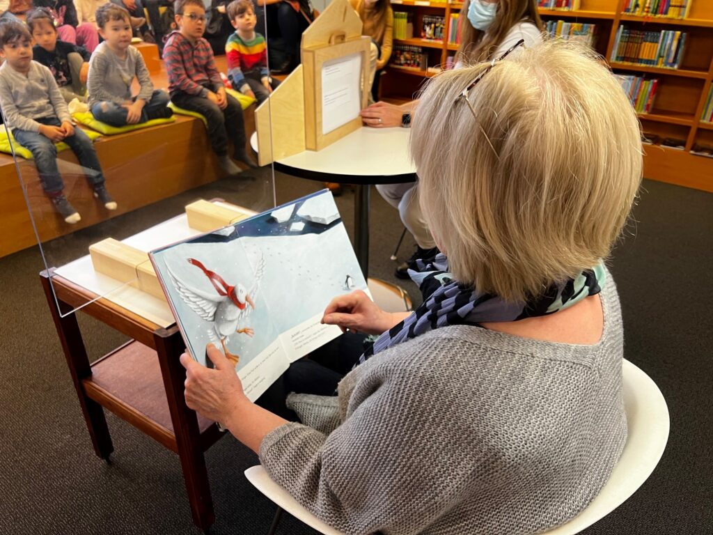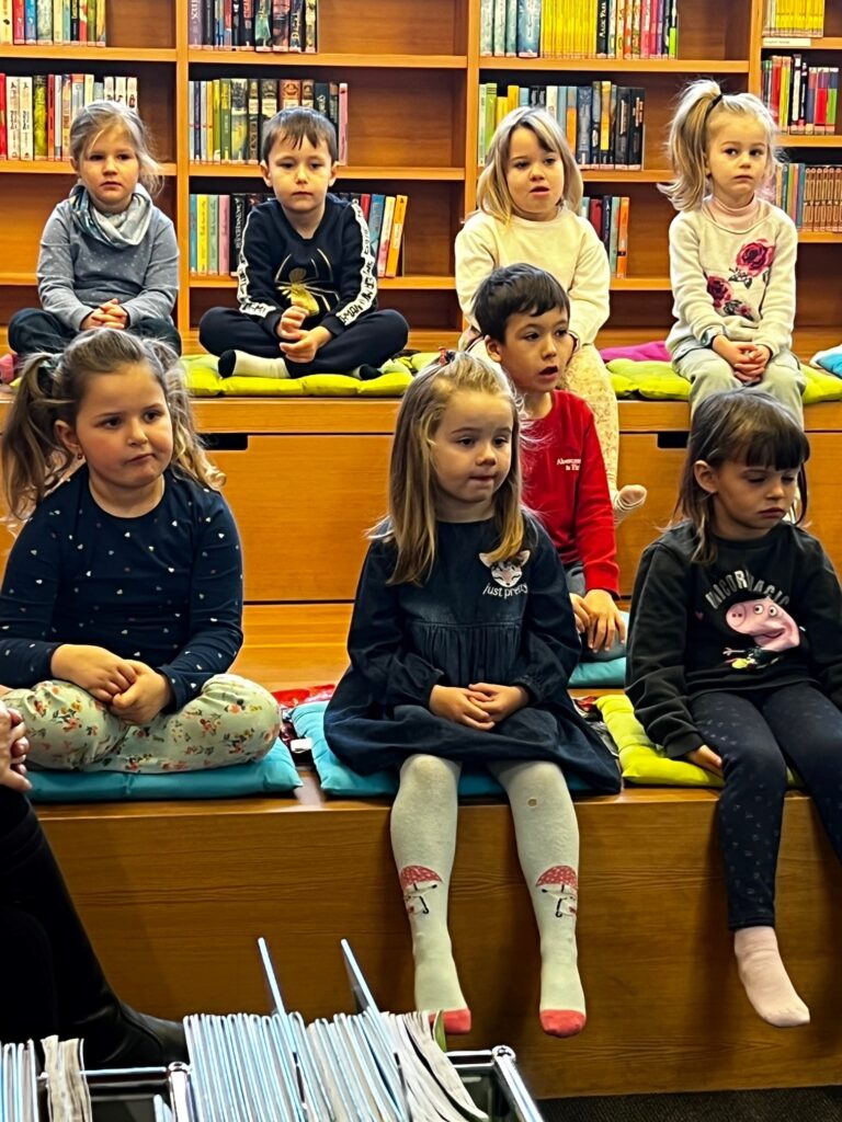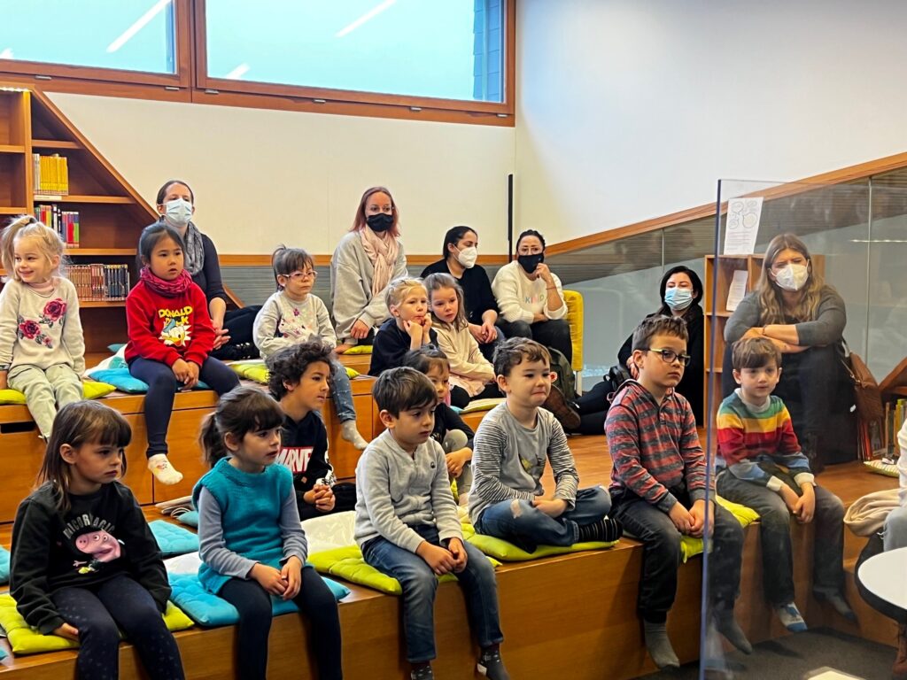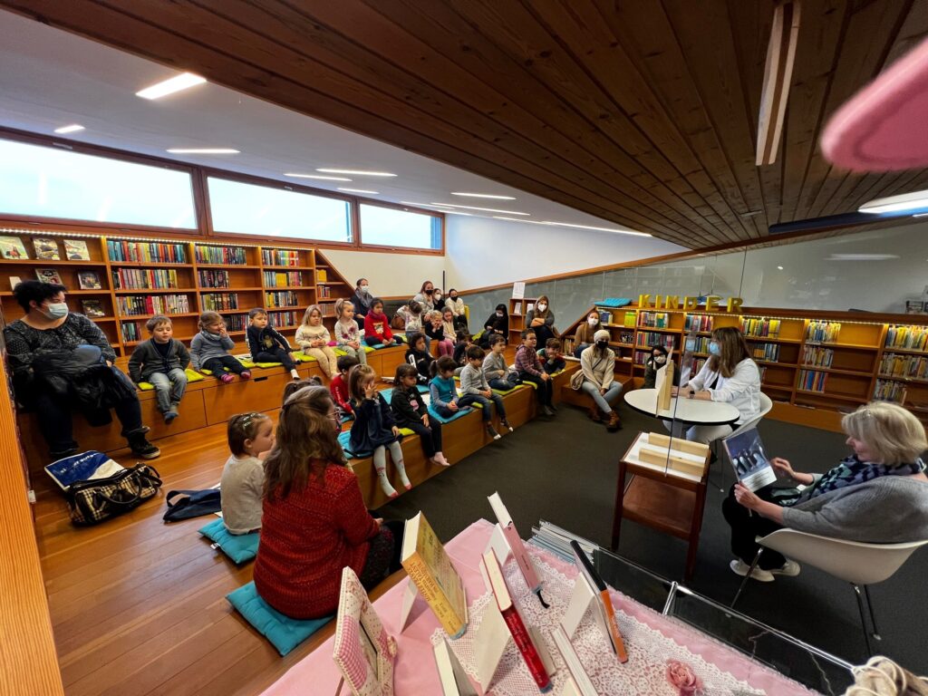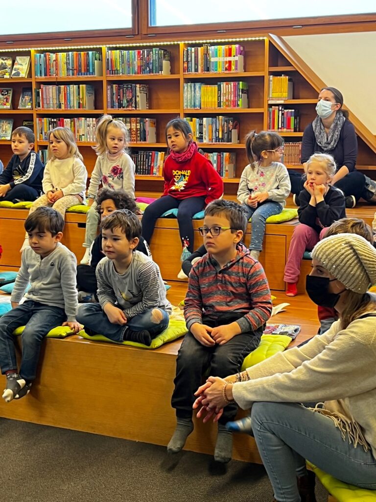Heute durften wir 25 Kinder vom «Eichholz-Kindergarten», 2 Betreuerinnen und 8 Mütter bei uns in der Bibliothek begrüssen. Nach einer Kamishibai-Geschichte wurde den Kindern von Frau Kast und Frau Lavelanet die verschiedenen Medien wie Hörbücher, Gesellschaftsspiele, Bilderbücher und Toni-Hörfiguren gezeigt, die sie in Zukunft in der Bibliothek ausleihen dürfen. Die Kinder wissen jetzt auch, wo sie die für sie altersgerechten Medien finden können. Im Anschluss durften sie bereits ihr erstes Bilderbuch ausleihen. In der Zwischenzeit erklärte Frau Bartl den interessierten Müttern, warum die Kinder ab 1. Kindergarten ein Schüler-Abo erhalten und warum «Lesen nicht erst in der Schule beginnt». Es wurden auch diverse Arten von Erstlese- und Vorlese-Büchern vorgestellt. So können die Eltern ihre Kinder beim «Lesenlernen» perfekt begleiten.