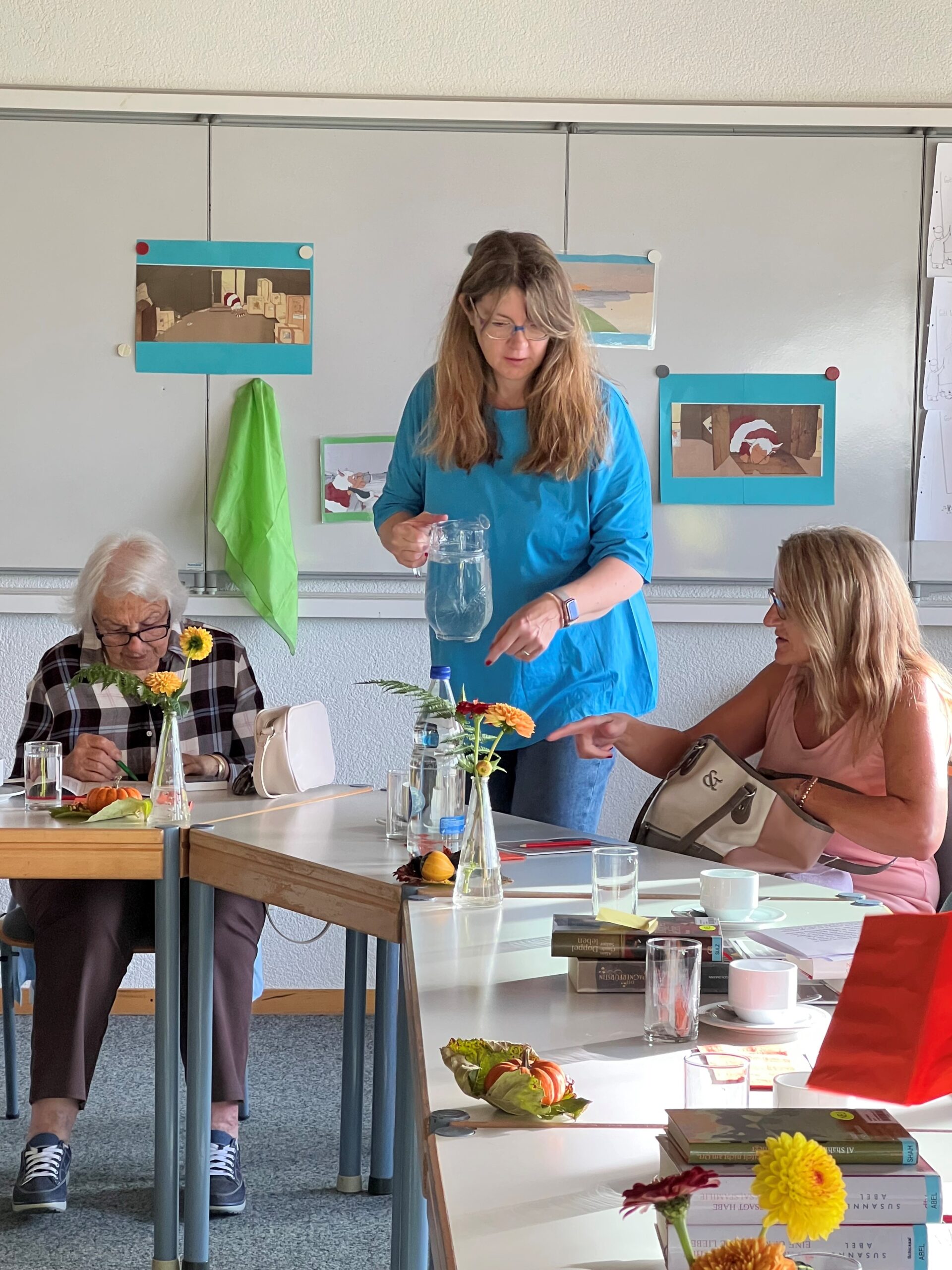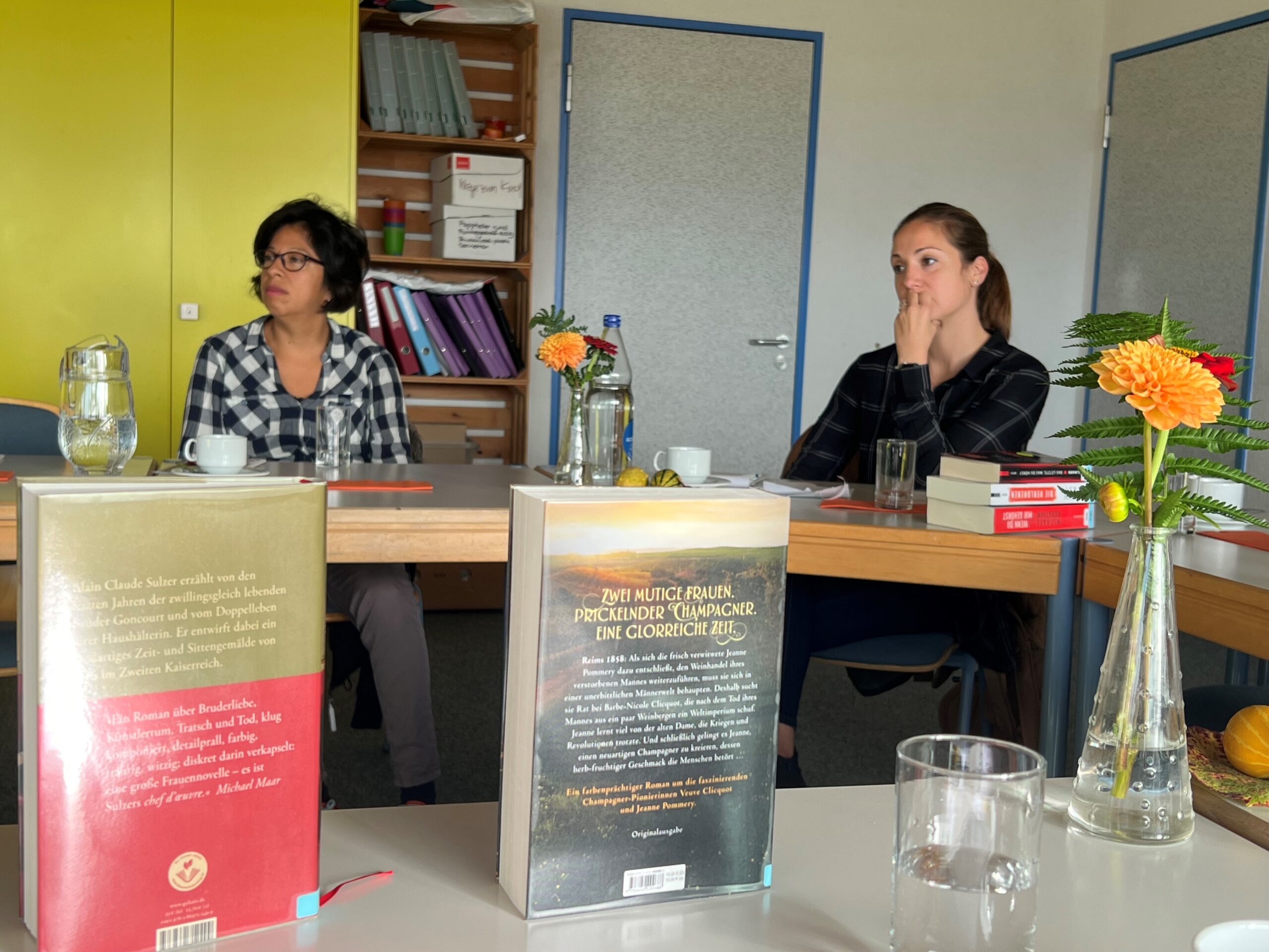 Trotz schönstem Herbstwetter kamen 10 Kundinnen in die Bibliothek zum traditionellen Herbst Bücherkaffee. Während rund 1.5 Stunden – unterbrochen mit einer Kaffeepause mit Gipfeli – wurden 16 Bücher von den Bibliothekarinnen Nicole Kast, Daniela Lavelanet und Bettina Bartl, sowie den beiden Kundinnen Ursina Schiesser und Hande Sezen vorgestellt. Die Themen der verschiedenen Bücher waren sehr vielschichtig: vom Krimi und Thriller, zur Geschichte eines irakischen Flüchtlings, über die Geschwister Goncourt ; die Champagnerhäuser Pommery und Cliquot, Giftmörderinnen im Mittelalter, Kinder von in Deutschland stationierten amerikanischen Soldaten, in einem Spazierstock gefundener Kunst nach den Kriegswirren…und noch einige mehr.