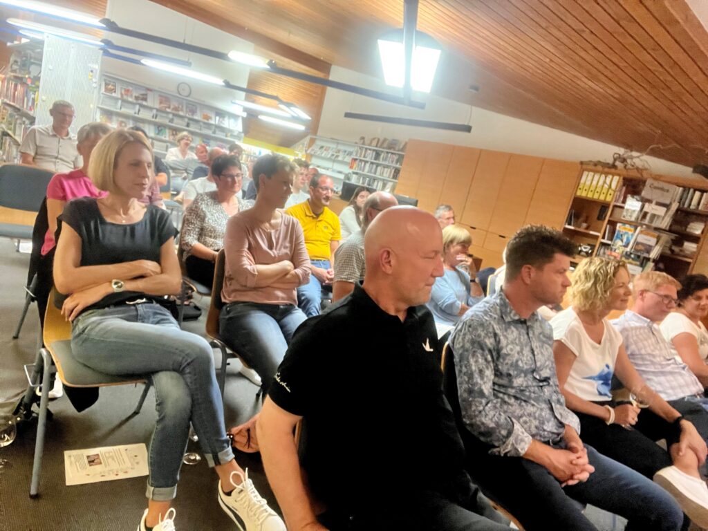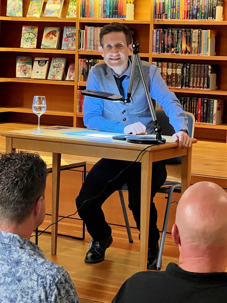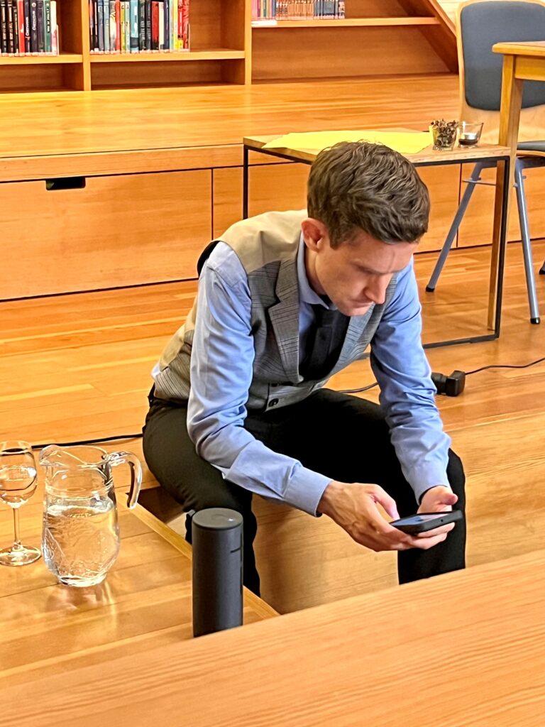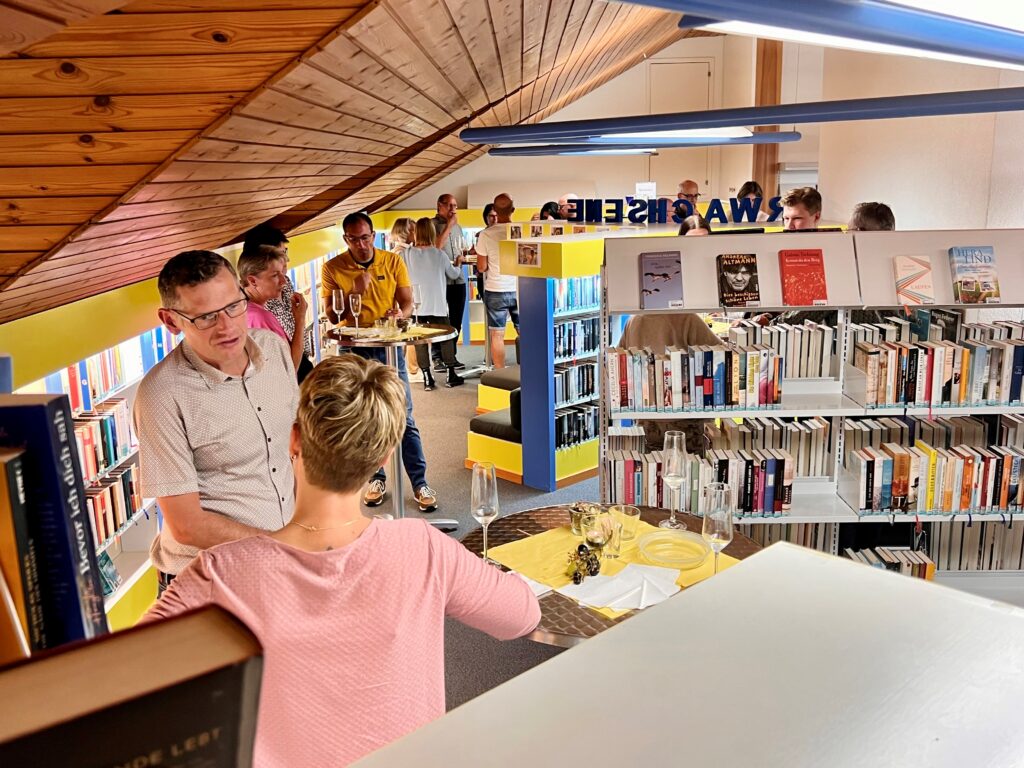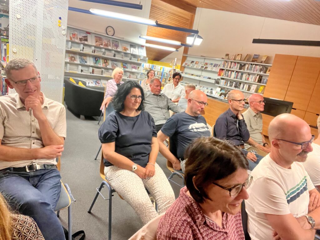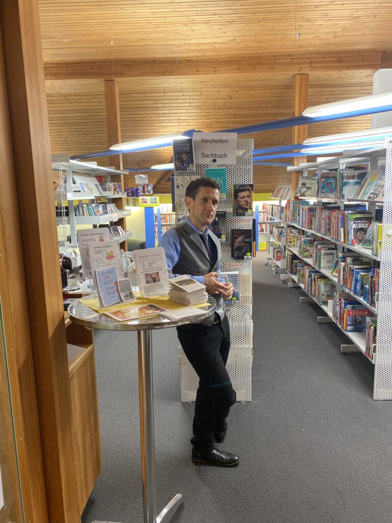 Trotz dem Start der Herbstferien war der «Wein und Crime» Anlass innert kurzer Zeit mit 30 Teilnehmern ausgebucht. Unsere Gäste wurden von Andres Stössel vom Weingut Schmidheiny und den Bibliothekarinnen im Foyer des KGH mit einem Schaumwein begrüsst. Gemeinsam ging es dann hoch in die Bibliothek, wo bereits Michael Schraner mit 3 spannenden, abgeschlossenen Krimigeschichten von namhaften deutschen Autoren auf die Teilnehmer wartete. Die Geschichten wurden vom ausgebildeten Schauspieler akzentuiert vorgetragen und passend zu den Geschichten kamen auch Requisiten wie z.B. Pistolen zum Einsatz, die die Spannung noch unterstrichen. Es war ein Erlebnis, einmal Geschichten so gekonnt vorgetragen zu hören.