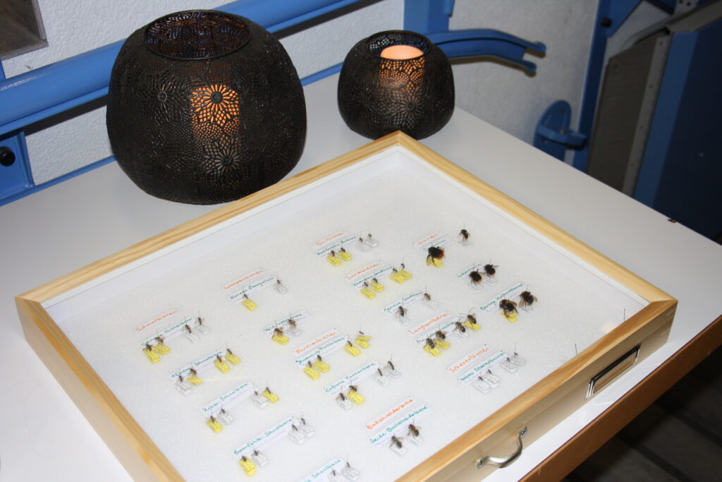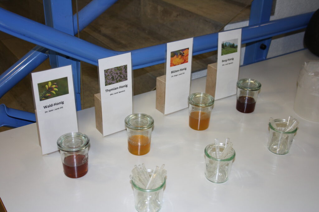 Vom Naturhistorischen Museum St. Gallen bekamen wir einen Kasten mit verschiedenen Präparaten von Bienenarten zur Ansicht sowie sogenannte Facettenbrillen. Ein Blick durch diese Brillen lassen uns sehen, wie Insekten ihre Umgebung wahrnehmen. Vor allem die anwesenden Kinder hatten ihren Spass daran, einmal «wie eine Biene zu sehen».